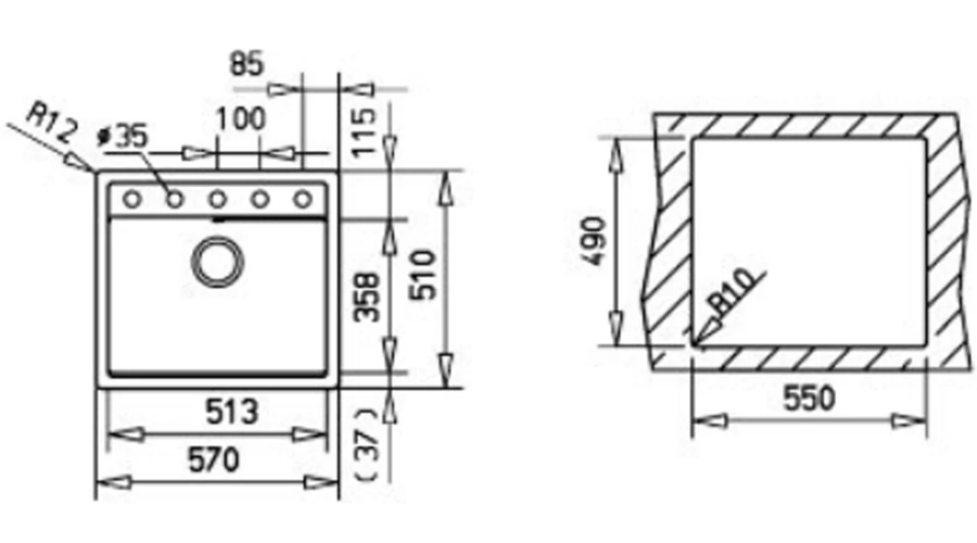 - Medenceméret: 513 x 358 x 180 mm